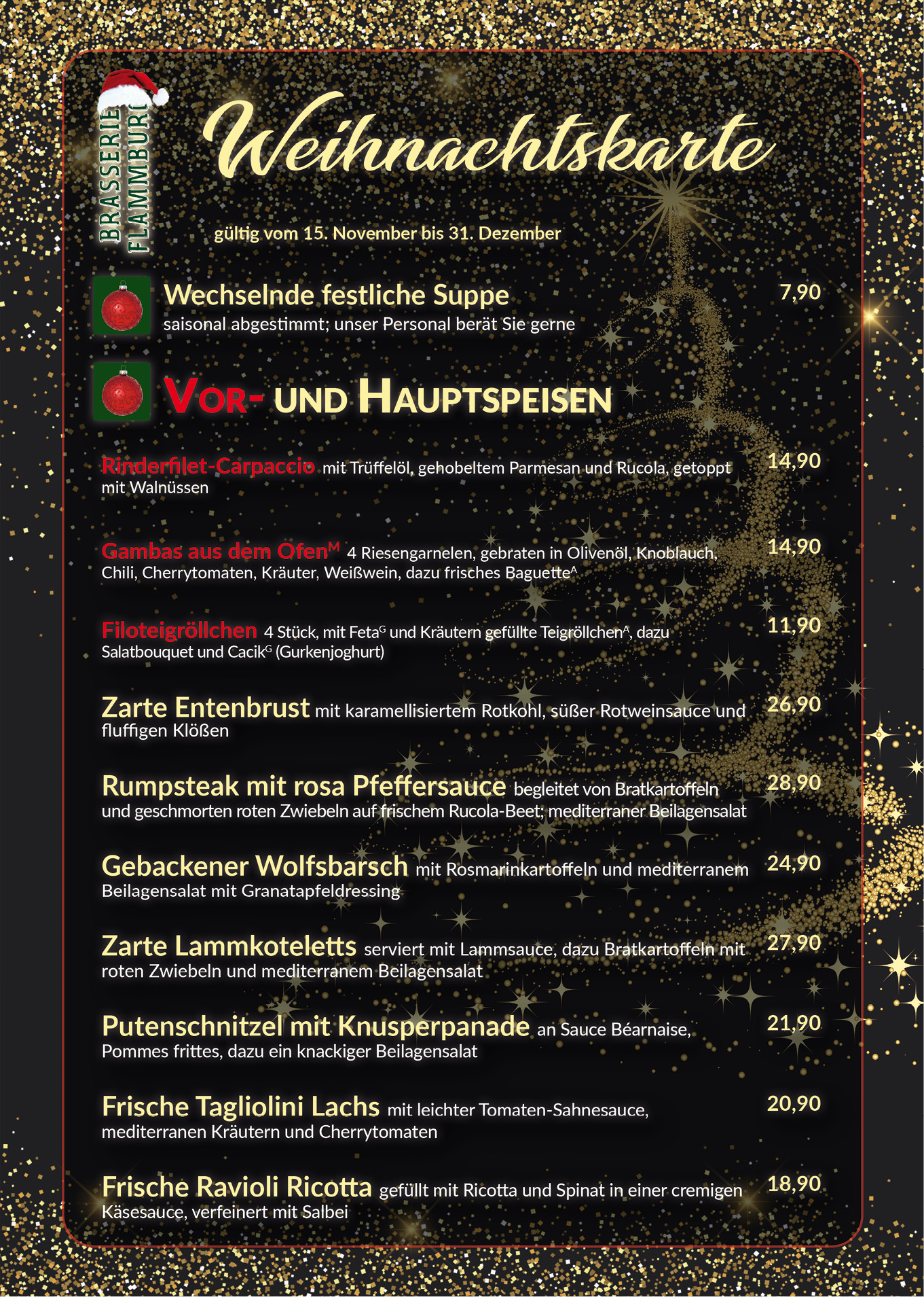 In Wohlfühlatmosphäre präsentiert sich die Brasserie Flammburg im Herzen von Baesweiler, direkt gegenüber der Kirche. Unser freundliches Team versucht Ihren Aufenthalt so angenehm wie möglich zu gestalten und verwöhnt Sie gerne mit dem Besten unserer Speisekarte.