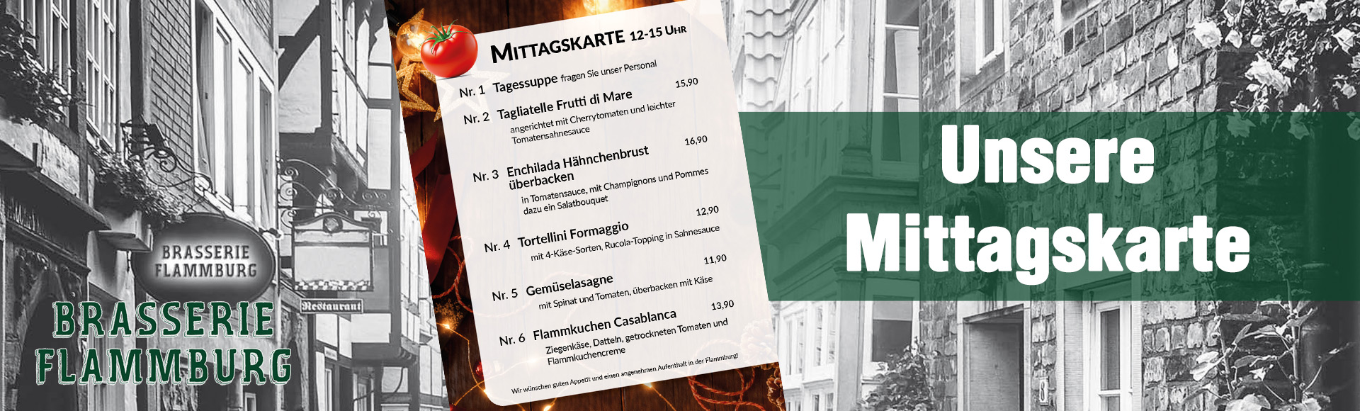 In Wohlfühlatmosphäre präsentiert sich die Brasserie Flammburg im Herzen von Baesweiler, direkt gegenüber der Kirche. Unser freundliches Team versucht Ihren Aufenthalt so angenehm wie möglich zu gestalten und verwöhnt Sie gerne mit dem Besten unserer Speisekarte.